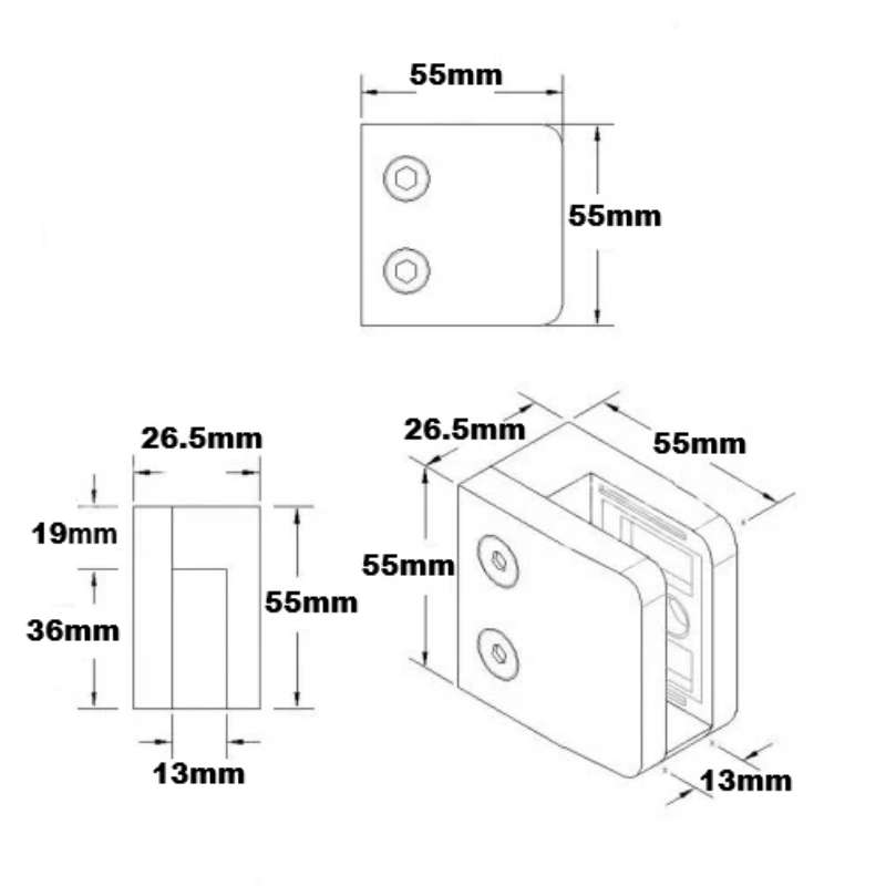 Designed to securely hold 12mm thick glass, these clamps provide a firm, slip-free grip for frameless glass panels, ensuring stability, safety, and a clean, minimalistic appearance. For less than 12mm glass panel, you will need thicker rubber pads.