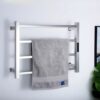 Our 4 rods heated towel is 600x450x120mm size which is suitable for bathroom and won’t take too much space on the wall. The square design is good for hung the towel or small towel to avoid slide off if there are round rod of towel rail.